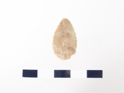 punta foliata a base arrotondata; ritocco piatto invadente della faccia superiore e marginale della faccia inferiore