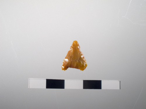 punta di freccia a base concava con ritocco invadente della faccia superiore, marginale prossimale di quella inferiore