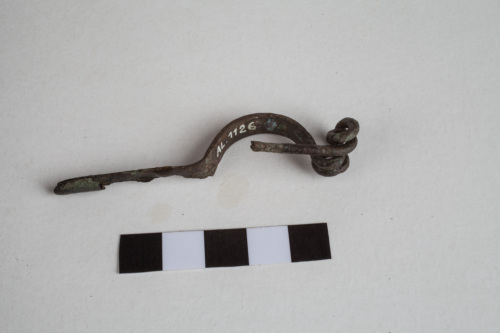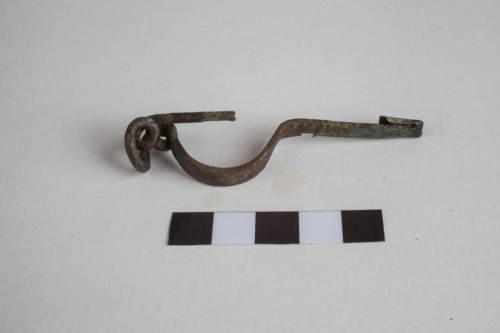 fibula tipo La Tène; arco appiattito, staffa lunga e appiattita, molla a due avvolgimenti