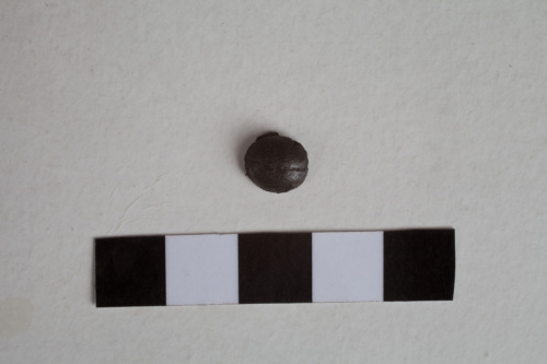 bottone di forma circolare e sezione concava-convessa con foro passante in ambra