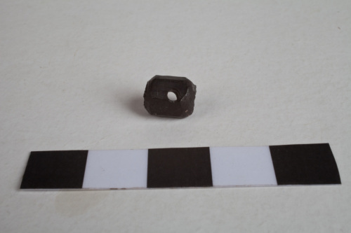 Perla in ambra di forma parallelepipeda sfaccettata con foro passante nel senso della lunghezza