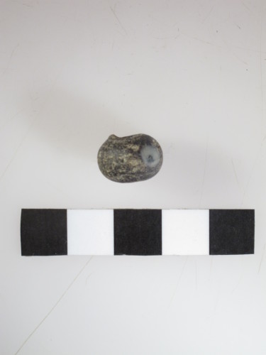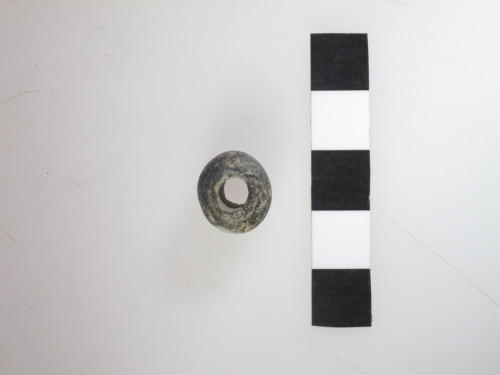 Perla tondeggiante in pasta vitrea bruno-nerastra; tipo A Gambacurta, G. 1987: "perle monocrome"