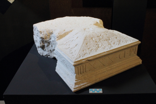 Parte di una mensola parallelepipeda, modanata, con sezione inferiore di forma piramidale