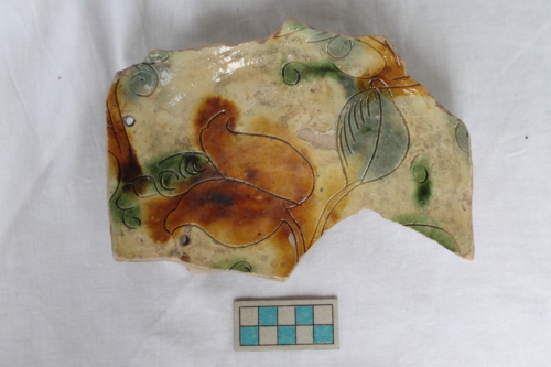 Il decoro graffito è costituito da un fiore tra motivi fitomorfi stilizzati.
