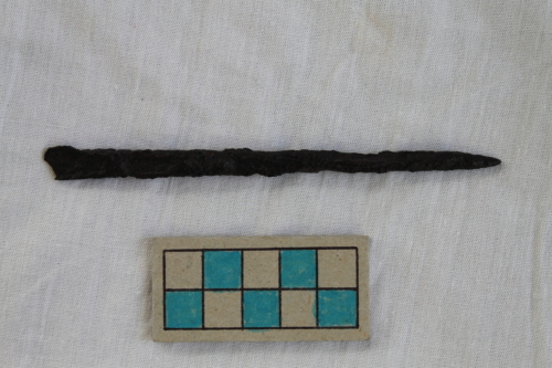 Punteruolo con corpo a sezione circolare, appuntito ad una estremità, ingrossato ed appiattito all'altra.
