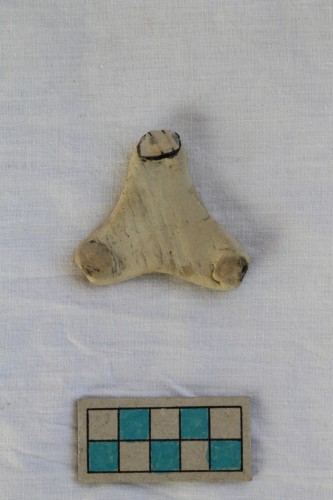 Distanziatore di cottura di forma irregolarmente triangolare, caratterizzato da una punta rilevata posizionata in corrispondenza di ogni vertice. Il treppiede era funzionale alla cottura delle ceramiche impilate all'interno del forno che, in assenza di un elemento separatore e per lo scioglimento del rivestimento vetroso, si sarebbero saldate tra loro.