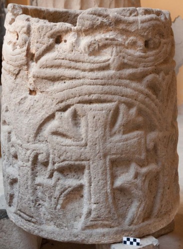 Sul registro superiore, inoltre vi sono alcuni grandi fori rettangolari, probabilmente posteriori alla decorazione di IX secolo, e relativi allaggancio di una qualche struttura presso la vera da pozzo, forse relativa allattingimento dellacqua.