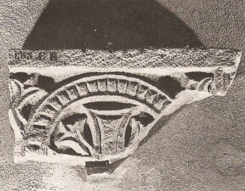 La decorazione prevede unarcatella solcata a raggiera da incisioni verticali, poggiante su un capitello (in questo frammento non conservato) decorato da un giglio stilizzato. Nei pennacchi laterali vi sono rappresentati gigli stilizzati percorsi da un solco centrale.