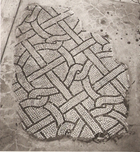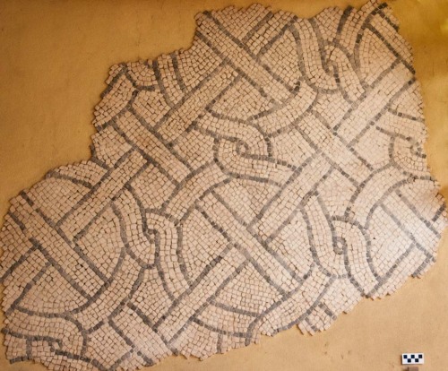 mosaico con tessere di marmo/ calcare bianco/ calcare bituinoso scuro/ terracotta rossa