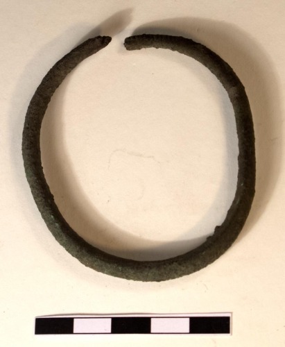 Bracciale (armilla) a verga tonda e a capi aperti, non sovrapposti. La sezione della verga è leggermente appiattita internamente nella parte centrale. Le dimensioni della verga si assottigliano leggermente presso i capi.