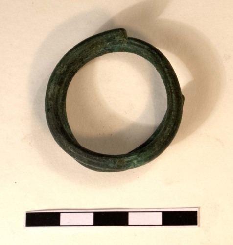 Bracciale (armilla) a spirale, coi capi sovrapposti realizzato in verga di bronzo a sezione circolare.