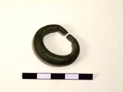 Anello digitale, a verga con sezione circolare, che si restringe verso i capi, che sono aperti. I capi sono piegati con la pinza. Non presenta decorazioni.
