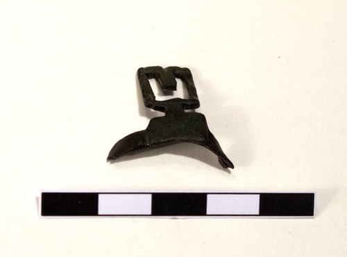 Anello digitale, a chiave, formato da una fascia in lega di rame, a capi saldati in prossimità del decoro. La fascia è un nastro semplice. Il decoro, sormontante, è formato da un rettangolo forato a forma di "U".