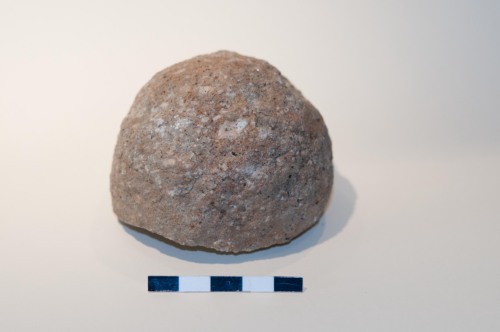 Proiettile, sfera da artiglieria in pietra vulcanica di colore grigio/giallo/marrone ricca di miche (nere) e feldspati . Leggermente lisciata in superficie e leggermente gradinata. La palla ha un calibro di 8,3 cm, ed è compatibile con armi da artiglieria leggera da campo quali la colubrina media o il falcone/falconetto, e probabilmente va associata ad una cronologia tra il XV e il XVI secolo. La roccia sembra essere un litotipo piuttosto pregiato e tenace, di origine veneta, ovvero la trachite dei vicini Colli Euganei (Padova). Si tratta dello stesso materiale con cui sono realizzate le pavimentazioni stradali tardo medievali e rinascimentali a Venezia.