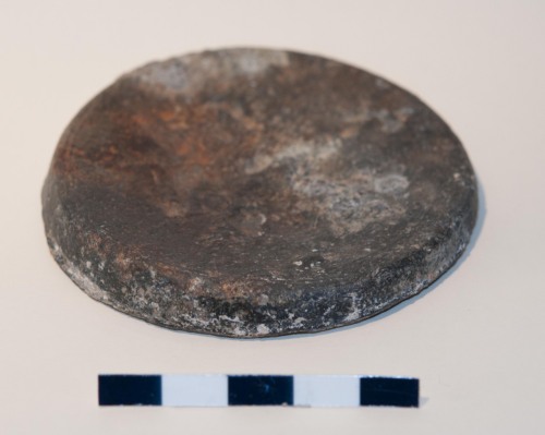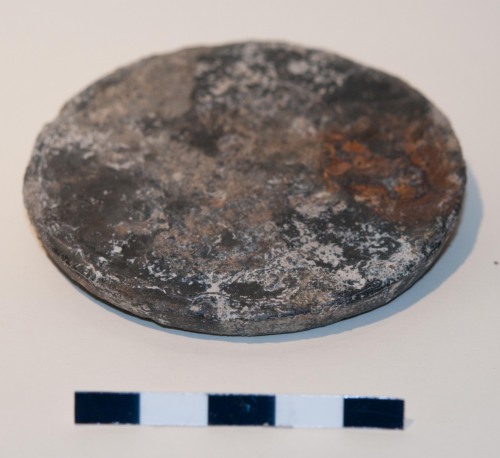 Piccolo lingotto in piombo di forma leggermente troncoconica, probabilmente utilizzato come peso cilindrico da bilancia. Forse anche come peso di precisione o peso monetale. Piano alla base, il peso è leggermente concavo nella parte alta. E ana-epigrafico e lisciato in superficie.