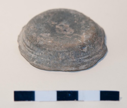 Piccolo lingotto in piombo di forma leggermente troncoconica, probabilmente utilizzato come peso cilindrico da bilancia. Forse anche come peso di precisione o peso monetale. Piano alla base, il peso è leggermente concavo nella parte alta. E ana-epigrafico e lisciato in superficie.