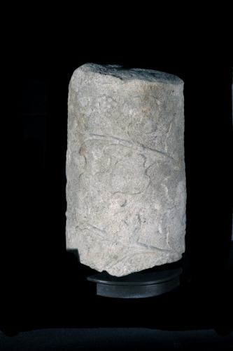 Fusto frammentario di colonna, decorato a bassorilievo con tralci d'edera a foglie cuoriformi e fiori granulati.