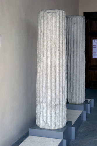 Fusto di colonna scanalato, rastremato verso l'alto, con ventiquattro scanalature stondate al sommoscapo.