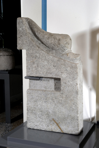 Fianco di schola, sagomato a delfino; sul fianco, un incasso rettangolare con orientamento orizzontale.