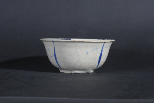 Il corpo ceramico, marnoso di colore giallino, è completamente ricoperto da smalto di colore biancastro, distribuito in modo disomogeneo e con accumuli all'esterno. All'interno del cavetto vi sono le tracce del distanziatore a tre punte utilizzato per la cottura.