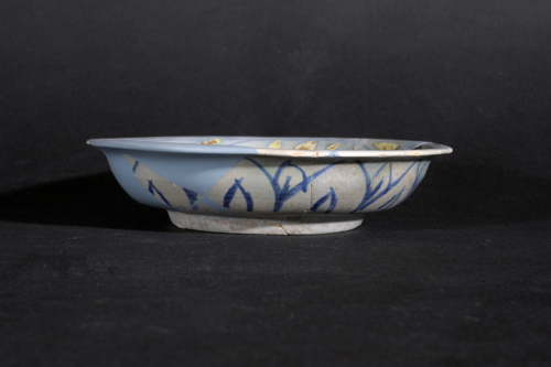 Piatto a cavetto ribassato con parete curva e bordo esoverso leggermente assottigliato, piede con cercine di sezione trapezoidale.
