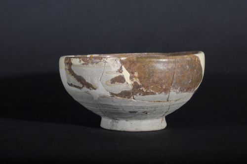Il corpo ceramico, con inclusi di chamotte di dimensioni medio-grandi, è ricoperto internamente da ingobbio bianco e vetrina giallina. All'interno del cavetto tracce del distanziatore a tre punte utilizzato durante la cottura.