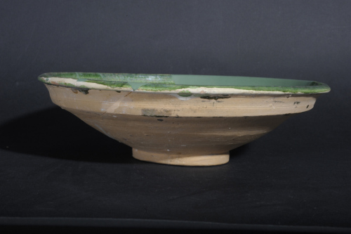Il corpo ceramico, di argilla depurata con inclusi bianchi di varie dimensioni, è ricoperto completamente da ingobbio bianco e vetrina monocroma verde.