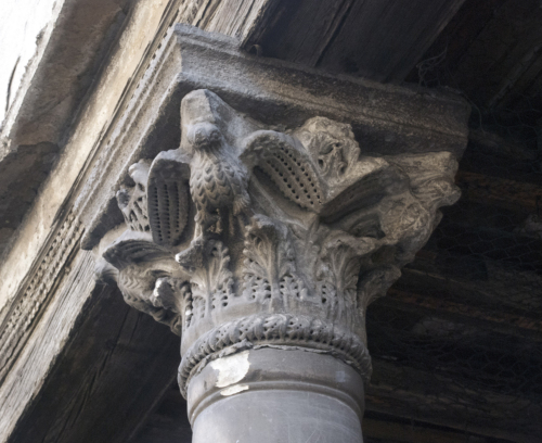 Il capitello è riutilizzato nel colonnato di Casa Muschietti, sopra un fusto di marmo cipollino.