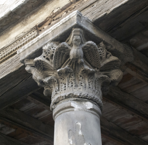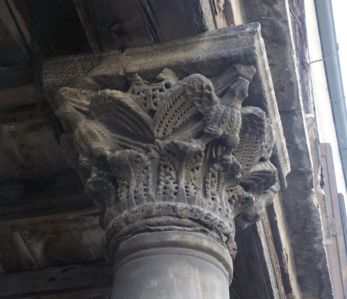 Il capitello è riutilizzato nel colonnato di Casa Muschietti, sopra un fusto di marmo cipollino.