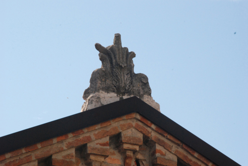 E' molto probabile che l'antefissa sia stata in origine impiegata come coronamento superiore di un sepolcro funerario. La collocazione del pezzo impedisce di rilevarne le misure.