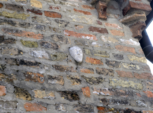 La condizione frammentaria del pezzo e la sua scarsa visibilità non consentono di assegnare la testa a una cronologia precisa. La collocazione del pezzo impedisce anche di rilevarne le misure.
