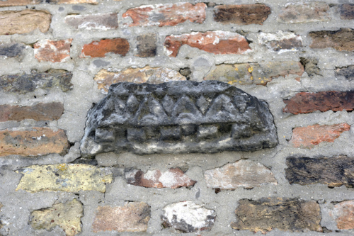 La scarsa visibilità e la condizione frammentaria del pezzo non consentono di individuare una precisa cronologia; la collocazione del pezzo impedisce di rilevarne le misure.