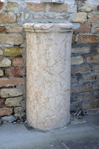Colonna con parte sommitale modanata lavorata nello stesso blocco, con fusto liscio, si distingue un listello piatto, da cui ha origine un toro liscio.
