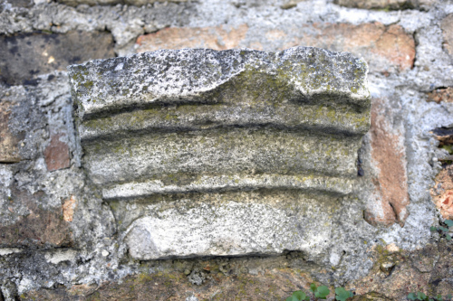 Semicolonna o pilastrino con parte sommitale modanata lavorata nello stesso blocco; sopra il fusto, leggermente rastremato verso lalto, si sviluppa una sequenza modanata che, a partire dallalto, si articola in un listello piatto, una gola diritta e un listello.