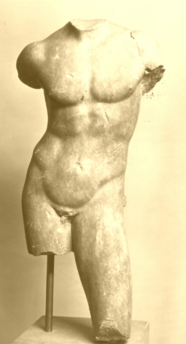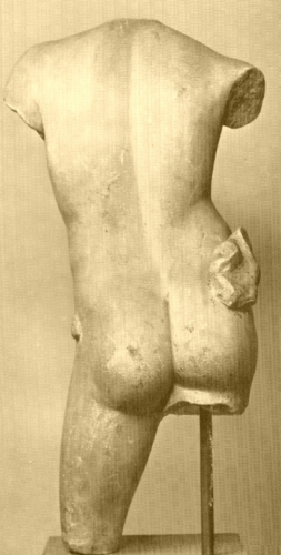 La scultura ritra un individuo maschile stante, il cui peso poggia sulla gamba sinistra, mentre la destra doveva forse essere lievemente flessa verso l'esterno. Il modellato è reso con vivo realismo, accentuato dai morbidi passaggi di luce.