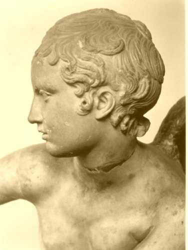 La scultura riproduce la figura di un giovane, dal modellato morbido tipico dell'infanzia. Egli tiene l'arco nelle mani, mentre si accinge a tenderlo per poterlo incordare. La figura è caratterizzata da due piccole ali sulla schiena.