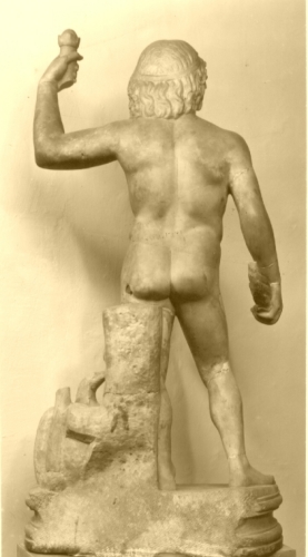 la stautuetta ritrae un uomo dall'aspetto maturo, stante, con il peso del corpo che poggia sulla gamba sinistra distesa, mentre la destra è portata di lato, aprendo così la figura verso l'esterno. Il volto è caratterizzato da un ovale allungato dalla folta barba e da baffi riccioluti. Sulla sinistra ai suoi piedi si trova un'aquila.
