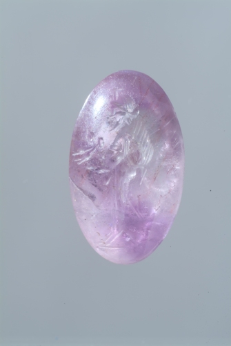 ametista, intaglio ovale allungato, fortemente convesso