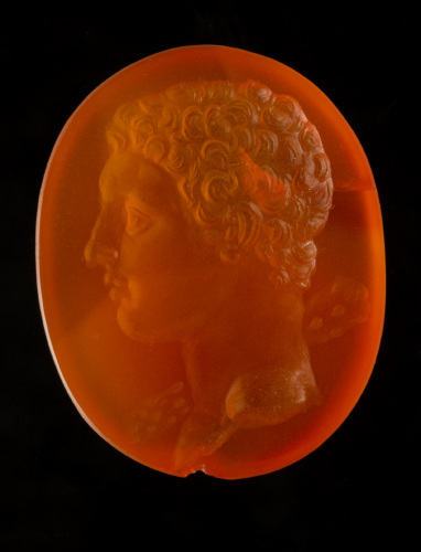 L'intaglio è la replica di un notissimo originale di età augustea, firmato da Gnaios, attivo verso la fine del I secolo a. C. (Sena Chiesa 1997, p. 129)