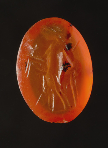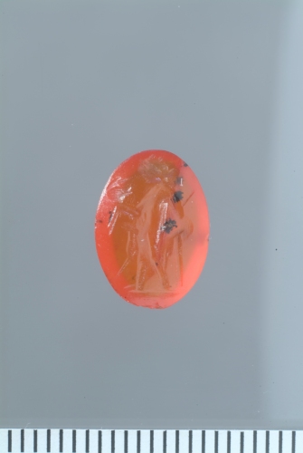corniola rossa, ovale, debolmente convessa; intaglio