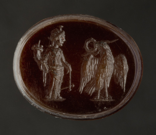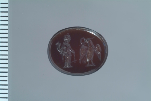 L'associazione delle due figure, per cui non è facile trovare confronti, porta a datare il pezzo nel corso del II secolo d.C., in particolare per la presenza dell'aquila, che trova un confronto assai preciso nella collezione Dressel di Berlino, datato appunto al II secolo (Weiss 2007, p. 270).