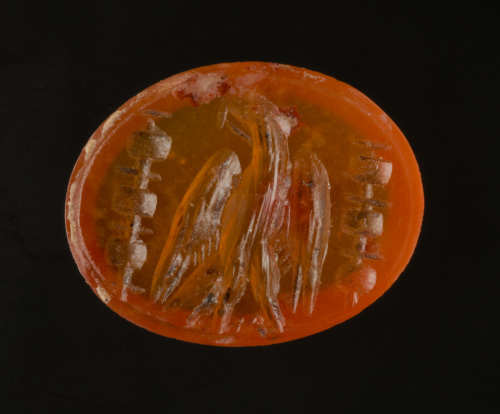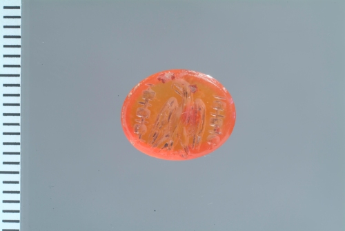 corniola gialla ,intaglio ovale piano, rendimento schematico