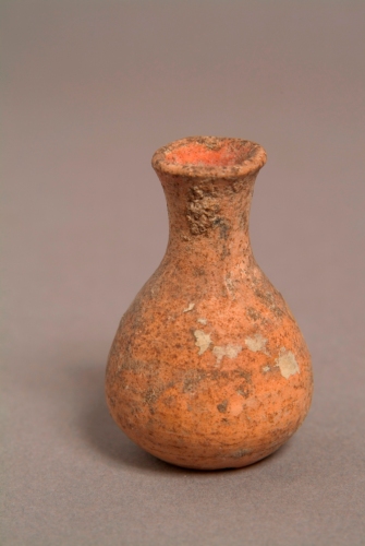 argilla depurata di colore rosato,superfici con tracce di vernice rossa,molto abrase