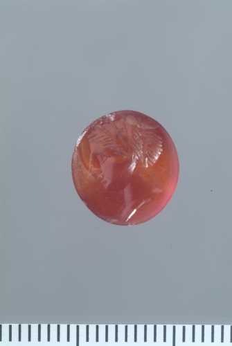 corniola rossa sub-circolare piana; intaglio