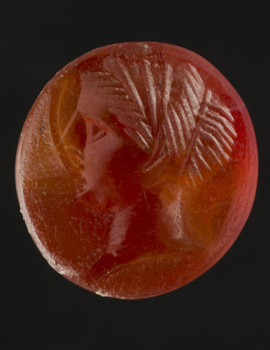 L'acconciatura che caratterizza questa immagine femminile, per quanto assai schematizzata, trova un confronto a preciso in un ritratto di regina firmato da Gnaios, incisore di età augustea (corniola del Metropolitan Museum di New York: Vollenweider 1966, p. 107, tav. 43, 1-3).