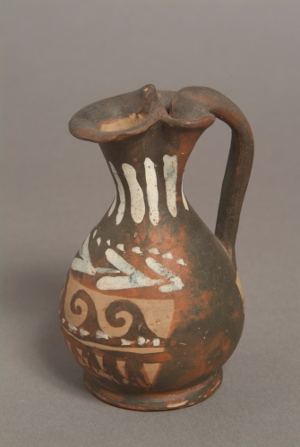 argilla di colore beige rosato,vernice di colore nero-bruno con sovradipinture di colore bianco