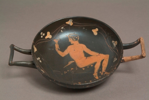 L'esemplare è attribuito dal Trendall alla cerchia del Pittore di Caivano. Per il tipo di coppa e di corona di foglie d'edera: A.D.TRENDALL, The red-figured vases of Luciana, Campania and Sicily, Oxford 1967, pag.313; per il tipo di satiro: cfr. ID. IBID. pag. 314, n° 635-636.