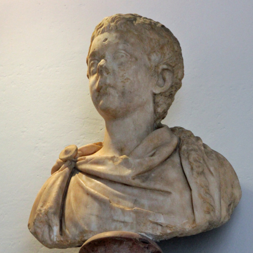 Il busto ritrae un bambino dal volto rivolto lievemente verso destra e caratterizzato da un ovale pieno, con gote paffute e mento rotondo. La fronte è ampia e di forma quadrangolare. Le soppracciglia, appena segnate, hanno forma ad arco ed ombreggiano lievemente i grandi occhi, in cui pupilla ed iride sono resi con una sottile incisione. Il naso è diritto e di piccole dimensioni. La bocca ha labbra carnose appena socchiuse.