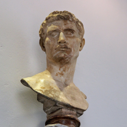 Il busto ritrae una figura maschile dal volto rivolto verso destra, caratterizzato da un ovale allungato e affilato, con zigomi alti ed evidenti e guance appena incavate. La fronte è stretta e solcata da incisioni sottili a rendere le pieghe del viso dovute sia all'espressione pensosa e vagamente malinconica che all'età matura. L'arcata soppraccigliare, ampia e profonda, ombreggia lo sguardo. Il naso è diritto. La bocca, dalle labbra carnose appena socchiuse, accentua il senso di trasporto ed emozione che la scultura fornisce a chi la osserva.