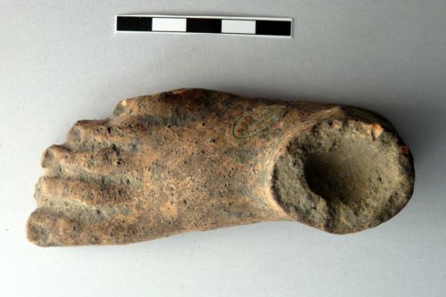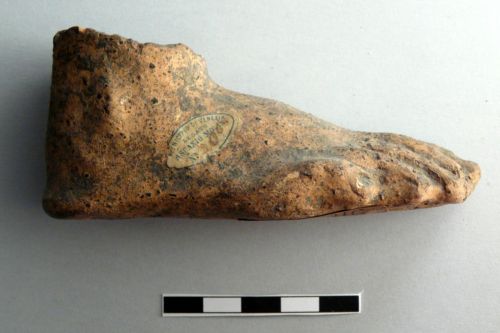 il piede rientra genericamente tra i votivi anatomici,a anche se nel gruppo meno numeroso delle parti anatomiche minori del vero. La mancanza di contesto di provenienza impedisce un'attribuzione cronologica e di provenienza realmente attendibile